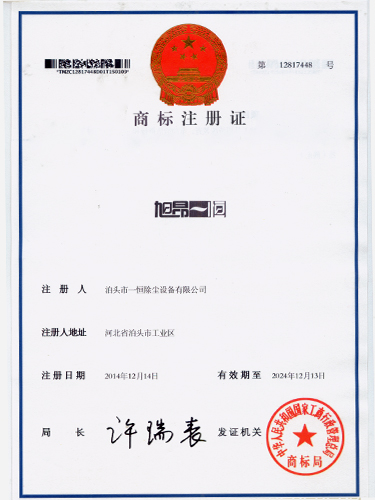一恒商標(biāo)注冊證-一恒商標(biāo)注冊證-泊頭市一恒除塵設(shè)備有限公司